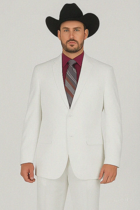 Designer Suit - Mens Suit Modern Fit 2 Buttons Notch Side Vented in White