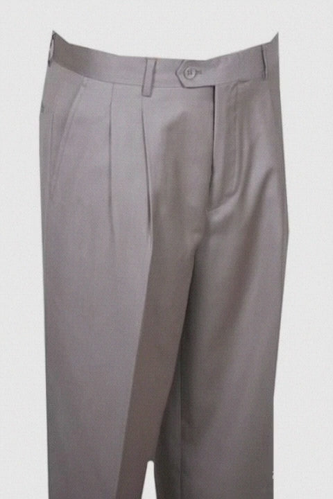 Men’s Beige Wide-Leg Pleated Dress Slacks – Long Rise Baggy Trousers