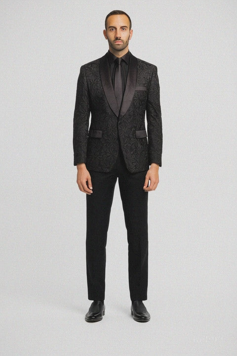 Men's 1 Button Slim Fit Satin Shawl Lapel Black Dinner Jacket