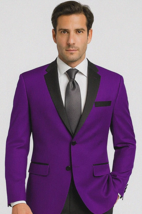 Velour Men's blazer Jacket Purple Two Button Party Suit & Tuxedo & w/ Black Velvet or Suit Fab