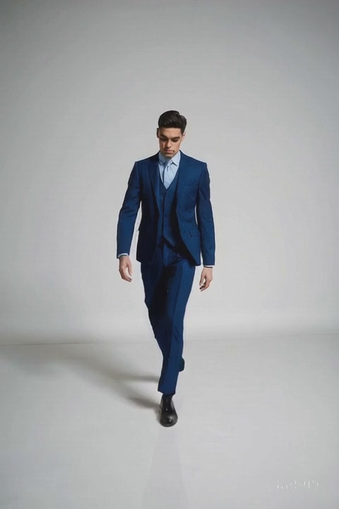 Men’s Royal Blue Modern Fit 3-Piece Vested Suit – Premium Formal Wear for Weddings & Business
