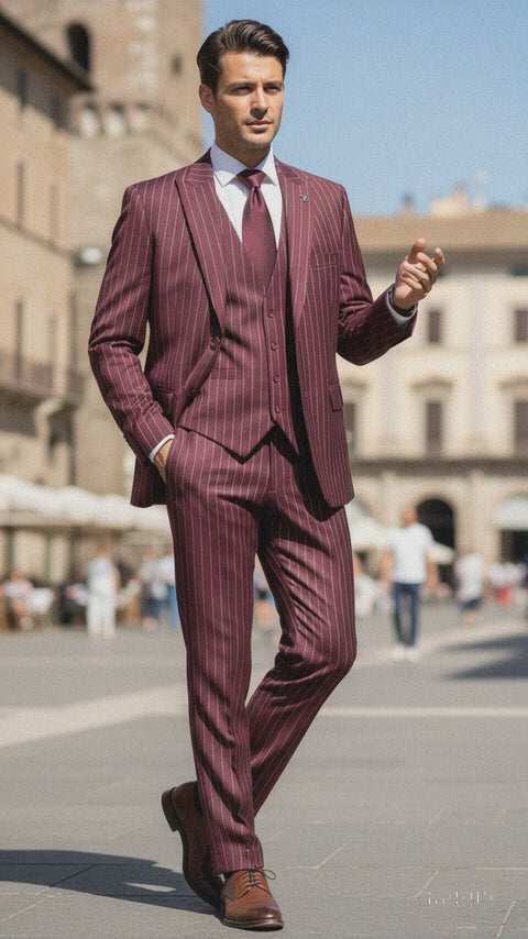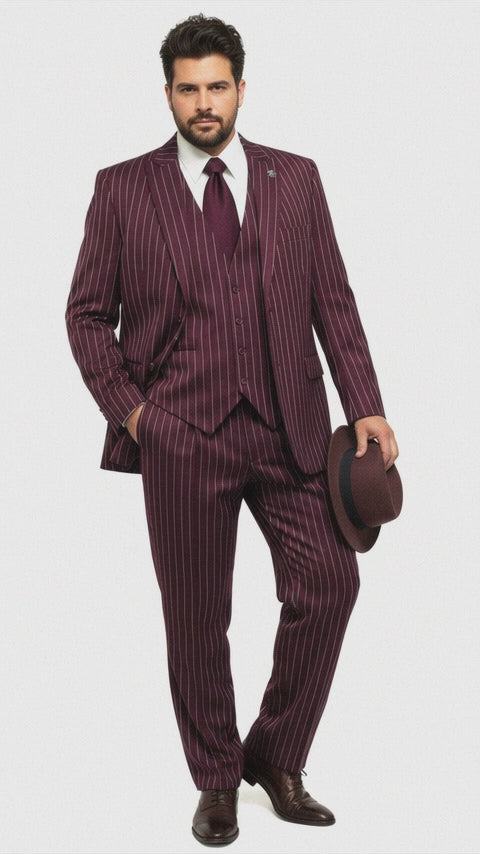 Men's Gangster Bold PinStripe Stripes Chalk Pinstripe Vested 3 Piece Fashion Suit 1920;s 30s Fashion in 10 Colors Collection For August/1/2021