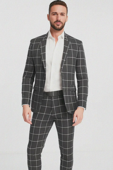 Bold Gangster Plaid Suit - 1920s Mens Fashion Window Pane Suit - Charcoal