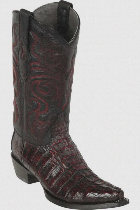 Men's Los Altos Caiman Tail Snip Toe Boots - Black Cherry
