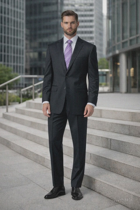 Mix and Match Suits Suit Separate Men's Charcoal Pinstripe 100% Wool Suit Charcoal