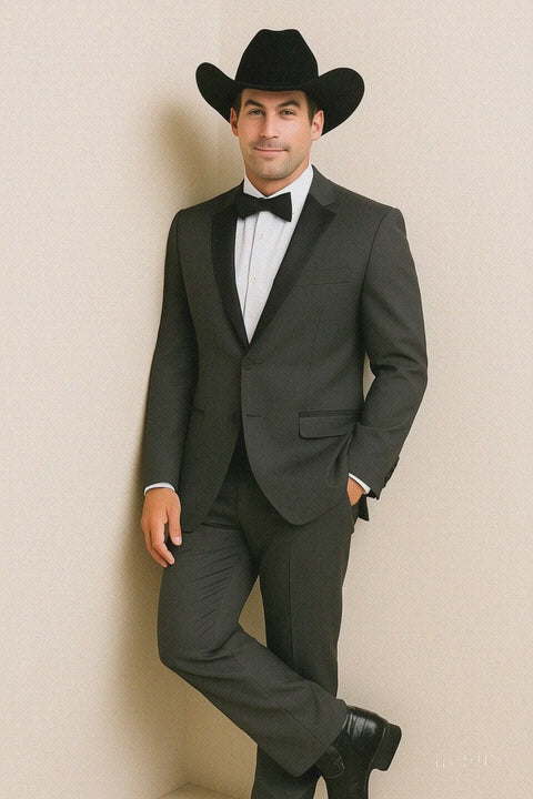 Grey~Gray 2 button collar or Formal Suit & Dinner Jacker or Blazer with Black Edge Trim Fashion Tuxedo For Men