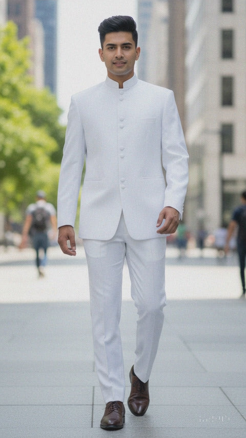 All information is encrypted and transmitted without risk using a Secure Sockets Layer (SSL) protocol. Group Orders: Receive a free Shirt & TIE & HANKIE (Any Color) Beautiful off white no collar shirt Matching tie combination Shirts available in multitude of ranges Matching white pant material for the suit set Customizable stitch and fitting options Super fine polyester fabric. Off white mandarin collar single breasted style Customizable regular, short jacket length Front vent with no lapels and self-top collar fabric. The Ivory Mandarin Suit from our store takes the simple lines of customary black tie to an even more modernized style that sprinkles a bit of uniqueness. This stylish suit has an open front with no buttons, no lapel, with a stylish satin mandarin collar, and complimenting satin besom pockets. This uncluttered style to formal fashion is modern and classy, impeccable for anyone who wants to make a strong style statement in a formal event like wedding, formal parties or church ceremonies. You just don’t have to stick around with the black tie suit for every formal event anymore, this Ivory Mandarin Suit is a great choice that adds extra brownie points to your smartness. If you are thinking about the varieties that we have in our site, be prepared to be shocked. Anything is possible here as you don’t have any size or color limitations in any style. You get what you ask for with perfect customization solutions. This item is ideal for weddings, proms, black tie, business and other formal events. N SHOP WITH CONFIDENCE SHOPPING ON MensUSA.COM IS SAFE AND SECURE. GUARANTEED!