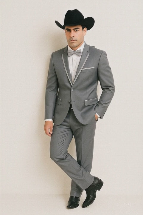 2 Button Notch Collar Rayon/Poly Eleganza Formal Modern Fit Suits Dinner Jacket/Blazer~Grey Suit Fashion Tuxedo For Men