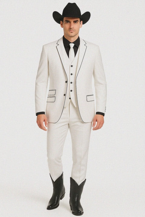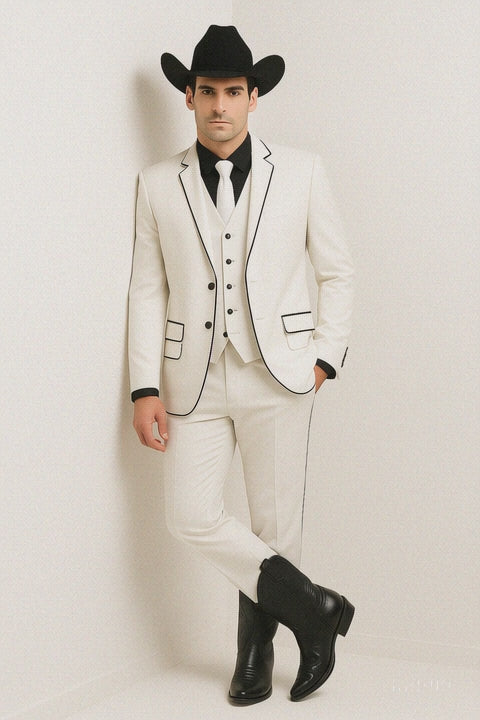 Black Lapel Two Toned Men'S 2 Buttons 3 Piece Church Suit White Tuxedo With Black Trim - Three Piece Suit