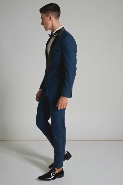 This suit is incredible! The mix of dark navy and cobalt tones gives it a rich, elegant look. The slim fit feels perfectly tailored, and the shawl lapel adds a touch of class. Ideal for weddings and formal parties. -Jason Miller