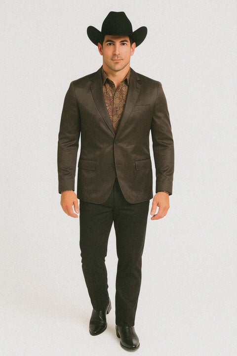 Men's Slim Fit Western Blazer Sport Coats Charcoal Sacos Vaqueros Para Hombre