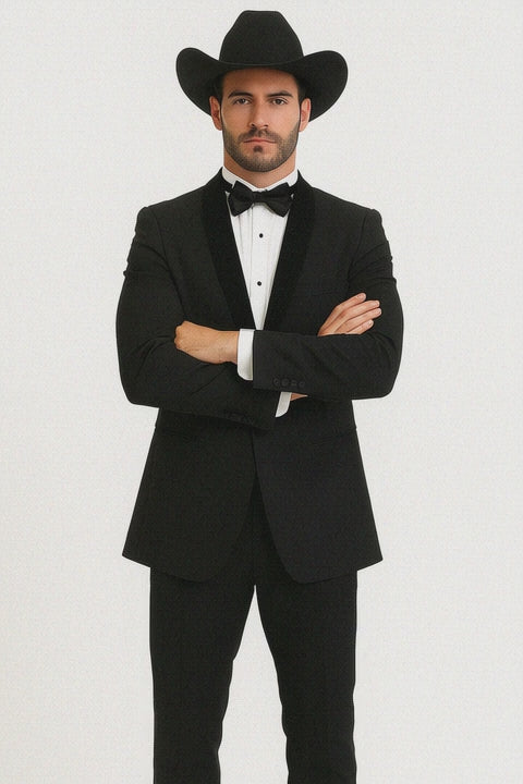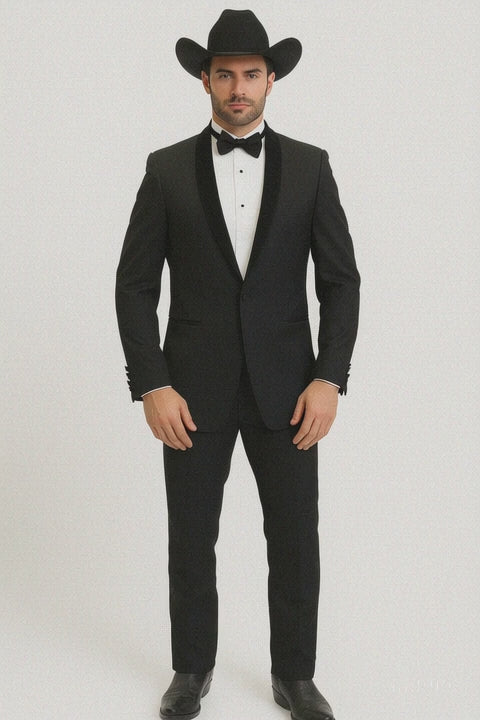 Men's Two Toned Full Lapel Shawl Black Tuxedo wool Fabric Suits