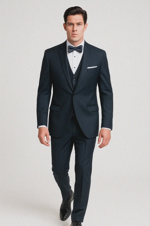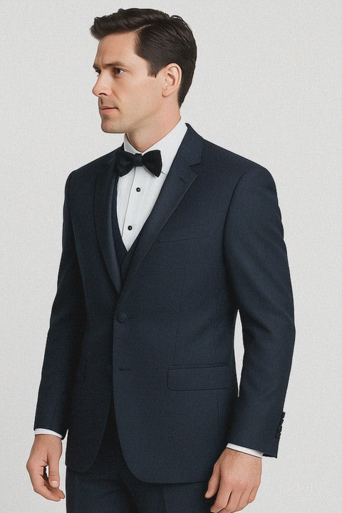 Midnight Navy Blue Wedding Tuxedo With Satin Framed Lapel