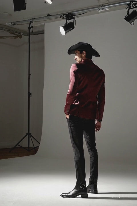 Men's Slim Fit Western Blazer Sport Coats Burgundy Sacos Vaqueros Para Hombre