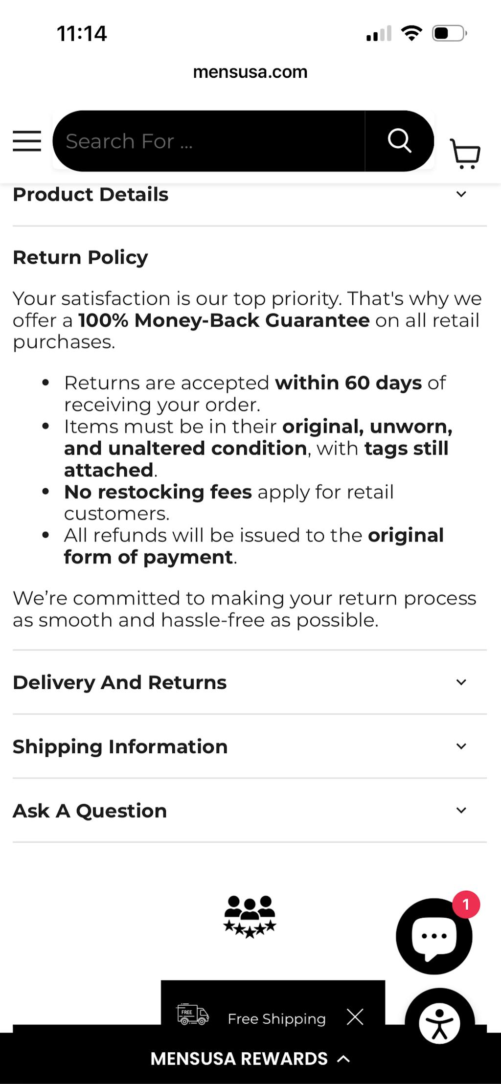 We offer a 60-day return window on eligible, unworn, and unaltered items with original tags attached, starting from the carrier-confirmed delivery date. If you received the correct item, return shipping is the customer’s responsibility, and original shipping fees are non-refundable.