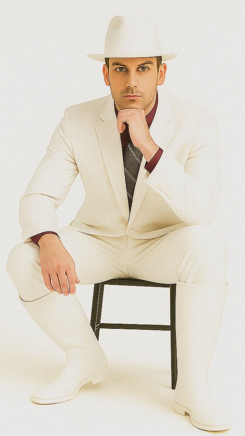 Designer Suit - Mens Suit Modern Fit 2 Buttons Notch Side Vented in White