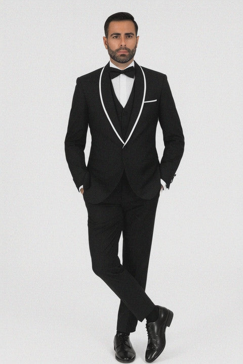 Men's Trimmed Shawl Lapel Blazer Dinner Jacket Black Vested Sport Coat