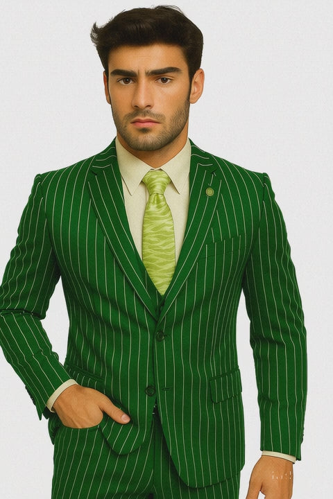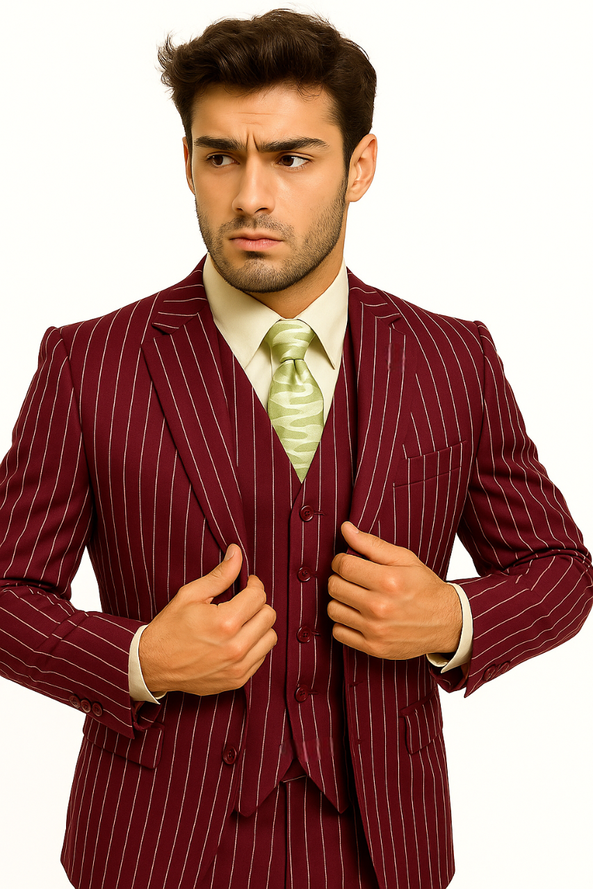 Men's Gangster Pinstripe 2 Button Double Breasted Vest Suit in hunter or burgundy – A Classic Statement of Elegance and Power