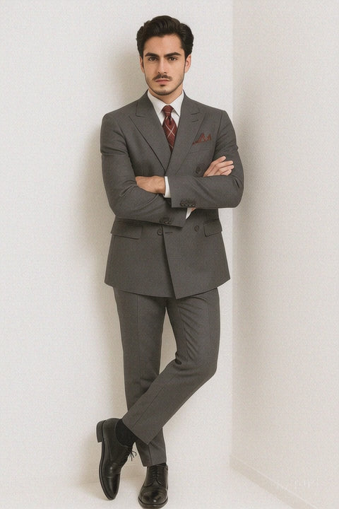 Experience timeless sophistication with our Men's Double Breasted Suit in Heather Gray, a refined masterpiece designed for modern gentlemen who appreciate elegance, structure, and versatility. This premium suit blends classic tailoring with contemporary comfort, offering you a polished appearance for business, weddings, evening events, or upscale social gatherings. Crafted with meticulous attention to detail, this heather gray suit stands out with its luxurious texture, impeccable fit, and enduring style, making it an essential addition to any man’s wardrobe.