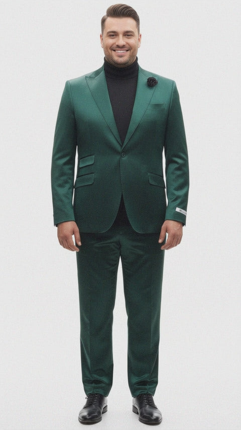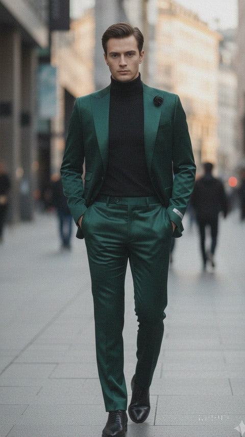 Mens Single Breast Suit Green - Sateen Shiny Fabric Metallic Fabric - Sharskin