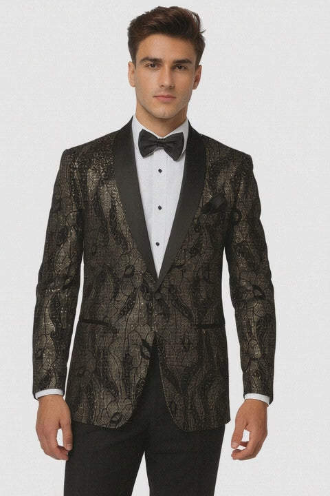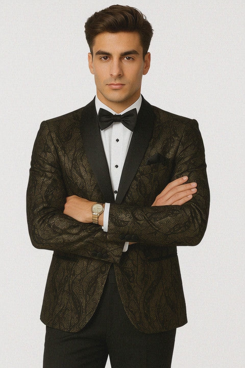 Received this blazer as a gift and it immediately became a favourite. The black background with gold touches gives it a modern, fashion-forward look while still being appropriate for formal settings. I paired it with a black shirt and gold-accented tie and felt extremely put together. The slim fit is smart without being overly tight—just enough to look sharp.-Aaron K