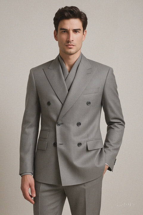 Tiglio Rosso Suit - Classic Fit Athletic Cut 100% Wool Super 150s Italian Fabric Peak Lapel Pleated Pants in Gray or Black or Navy Blue