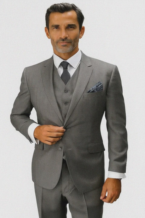 Statement Suits - Plaid Suits - Business Suits Italian Vested Suits Grey - 100% Percent Wool Fabric Suit - Worsted Wool Business Suit