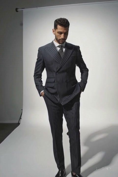 Experience timeless elegance and modern craftsmanship with our Men’s Italian Wool Suit in Charcoal Grey, a masterpiece designed for the sophisticated gentleman who values quality, comfort, and refined style. This men’s designer classic fit double-breasted wool pinstripe suit embodies the perfect fusion of traditional tailoring and contemporary luxury, making it an essential piece for business, weddings, or formal occasions.