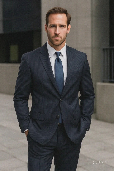 Step into timeless sophistication with this Men’s Navy Pinstripe Italian Design Suit—a refined essential crafted for men who appreciate elevated tailoring and a polished, professional look. Designed in a classic 2-button single-breasted style, this suit blends Italian-inspired aesthetics with modern-day comfort, ensuring you make a distinguished impression at any formal or business occasion.