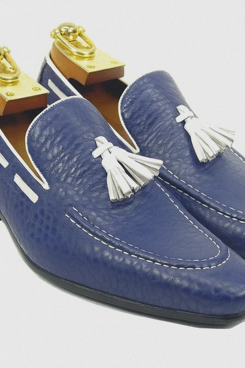 Step into modern sophistication with the Carrucci Contrast Tassel Loafer, a bold fusion of luxury craftsmanship and striking two-tone design. Available in Navy/Red, Brown/White, and other elegant color combinations, these premium loafers redefine men’s dress shoes with their attention to detail, vibrant contrast tones, and superior comfort. Designed for fashion-forward gentlemen, they’re the perfect choice for weddings, formal events, business wear, or smart-casual occasions.
