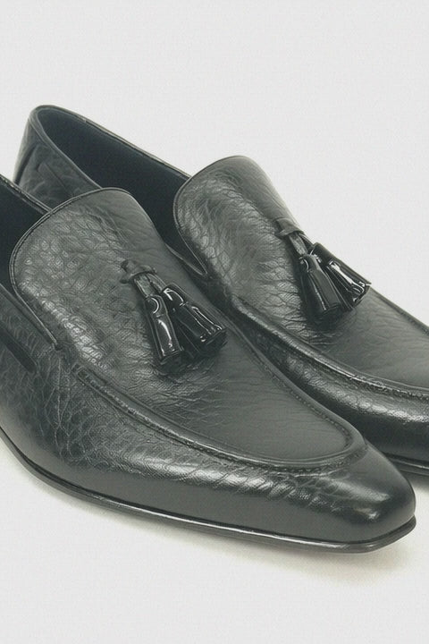 The classic tassel design on the vamp pays homage to timeless Italian-inspired footwear while giving the loafer a refined, contemporary twist. The hand-burnished leather upper is meticulously detailed with precision stitching, providing both durability and artistry. A low-profile stacked heel and rounded toe complete the design, offering a clean and elegant silhouette suitable for both formal and stylish casual outfits.
