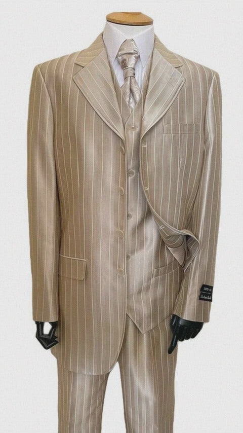 Zoot Suit - Shiny Gold Champaign Mens Harlem Gangster Suit 1920s Tan Stripe Fortino 2911V