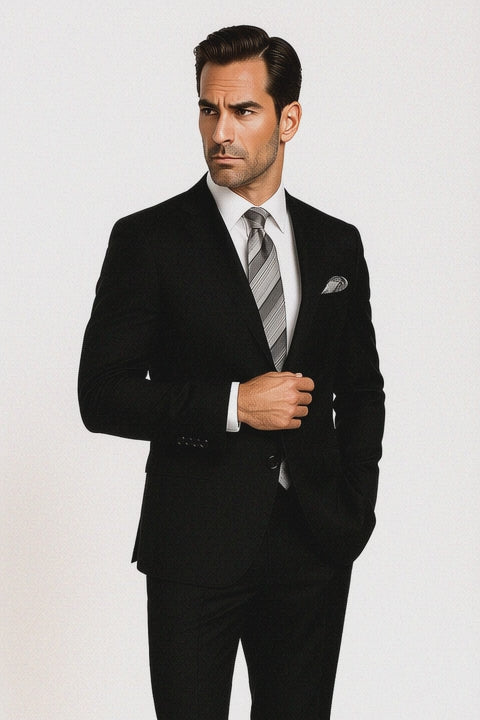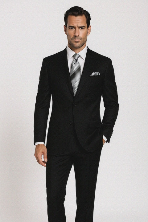 Mantoni Suit - Signature Menswear Wool Fabric SuitsOutlet - Brand Men's 2 Button Suit Black- High End Suits - High Quality Suits