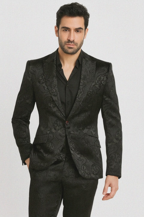 All information is encrypted and transmitted without risk using a Secure Sockets Layer (SSL) protocol. Group Orders: Receive a free Shirt & TIE & HANKIE (Any Color) Two Buttons Single Breasted Notch Lapel One Chest Pocket Front Flap Pockets One Ticket Pocket Paisley Pattern Side Vents Great for Stage Group, Club Entertainment or any Special Occasions Material : Shiny Microfiber Silky Color : Black This item is ideal for weddings, proms, black tie, business and other formal events. N SHOP WITH CONFIDENCE SHOPPING ON MensUSA.COM IS SAFE AND SECURE. GUARANTEED!