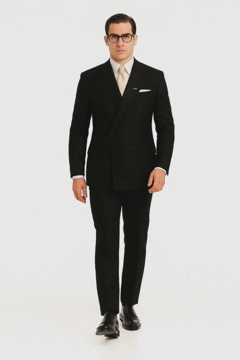 Elegant, masculine, and timeless. The suit really fits beautifully, and the black has a richness in depth. It is far and away the best double-breasted suit I own. - Edward T.