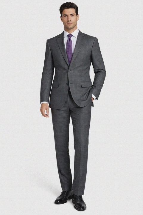 A perfect balance of classic pattern and modern tailoring, this charcoal glen plaid suit is a must-have for the well-dressed gentleman.