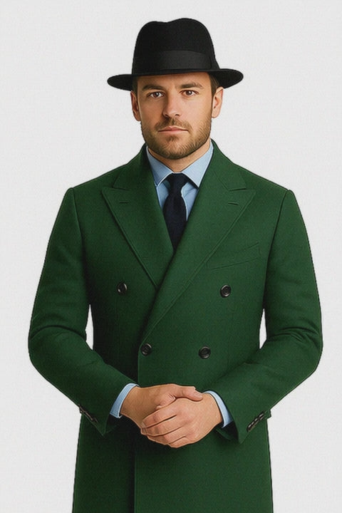 Men's Dress Coat Double Breasted Long Overcoat Olive Green