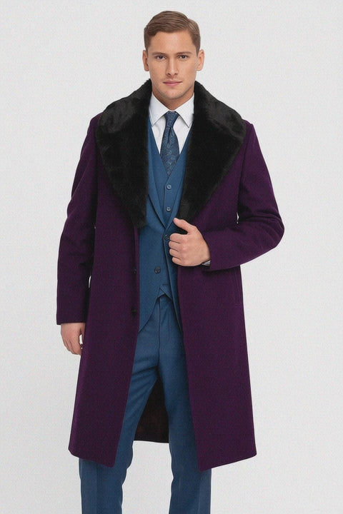Purple Overcoat ~ Long Men's Dress Topcoat - Winter coat With Fur Collar in and Fabric
