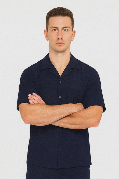 I love everything about this walking short set! The navy shade gives it a classy, masculine look that works for both casual and semi-formal settings. The shorts are comfortable, and the shirt drapes beautifully. It’s the perfect outfit for weekends or evening outings. – Ricardo L.