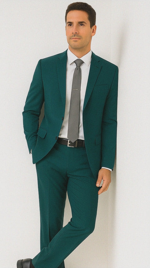This Men’s Teal Blue Super Slim Fit Suit offers a fresh and modern twist on classic tailoring. Featuring a two-button front closure, sharp notch lapels, and flat-front pants, it’s cut close to the body for a sleek, contemporary silhouette. The bold teal blue color makes it stand out while remaining polished enough for work, events, or stylish nights out. Its clearance price makes it an affordable way to elevate your wardrobe.