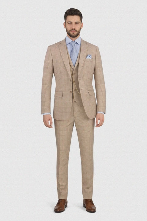 Glen Plaid Suit - Men's 3 Piece Slim Fit Suit - Beige Suit- SV2W6