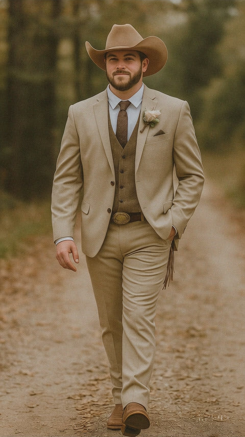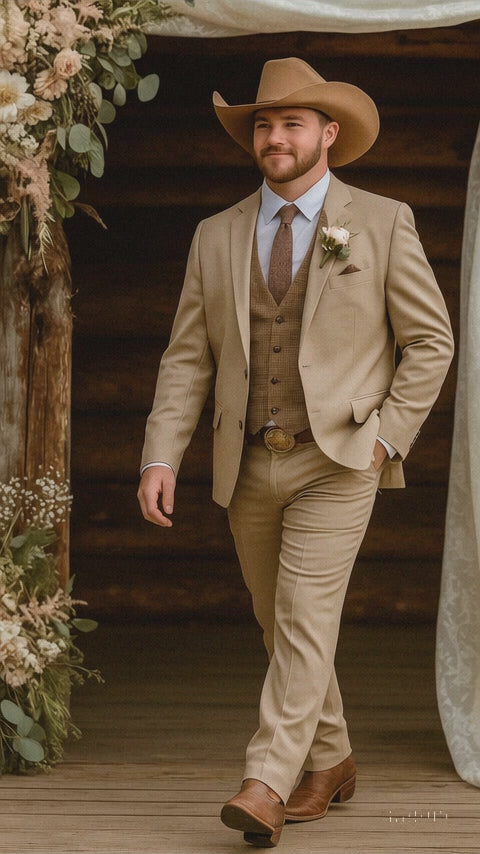 Step into timeless charm with our Stylish Cowboy Wedding Suit for Men, a perfect blend of Western tradition and modern sophistication. Designed for the groom or guest who appreciates authentic country style, this rustic wedding suit captures the spirit of the Old West while maintaining a sharp, contemporary silhouette. Whether you're walking down the aisle in a countryside barn or attending a sunset ranch ceremony, this suit ensures you’ll look effortlessly refined and ruggedly handsome.