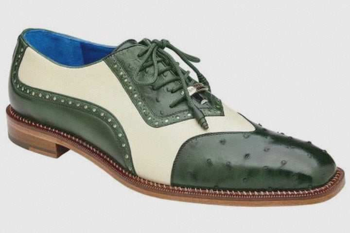 Belvedere Sesto Forest Green / Cream Genuine Ostrich Quill Italian Calf Wingtip Shoes