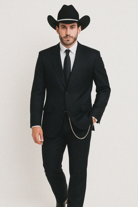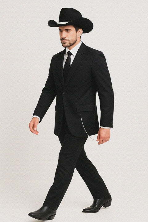 Western Suit - Trajes Para Hombres - Cowboy Formal Attire - Trajes De Novio - Four Button Black Suit