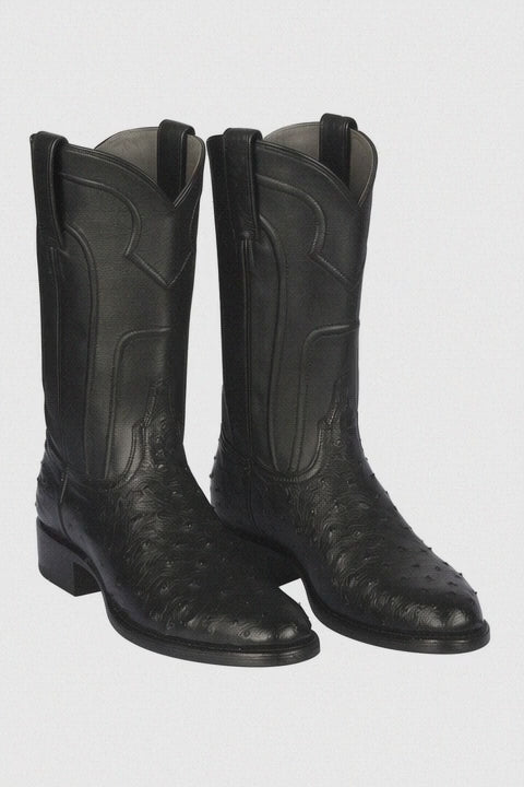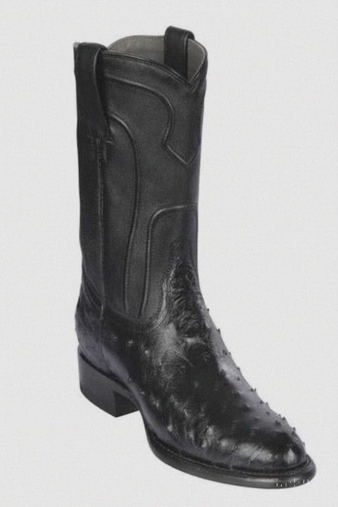 Los Altos Boots Men's Ostrich Roper Western Boots Black