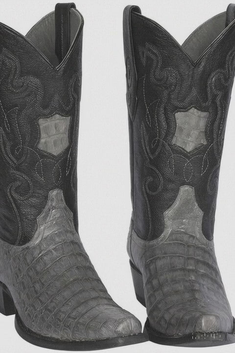 These grey caiman cowboy boots are fantastic! The leather feels smooth and durable. The design is stylish and perfect for both casual and dressy occasions. Comfortable enough to wear all day. -Declan Harper