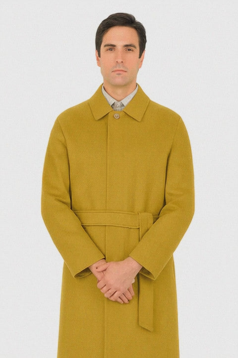 Men's Dress Coat Belted Full Length Overcoat ~ Long Men's Dress Topcoat - Winter coat 45 Inches Button Closure Camel Coat
