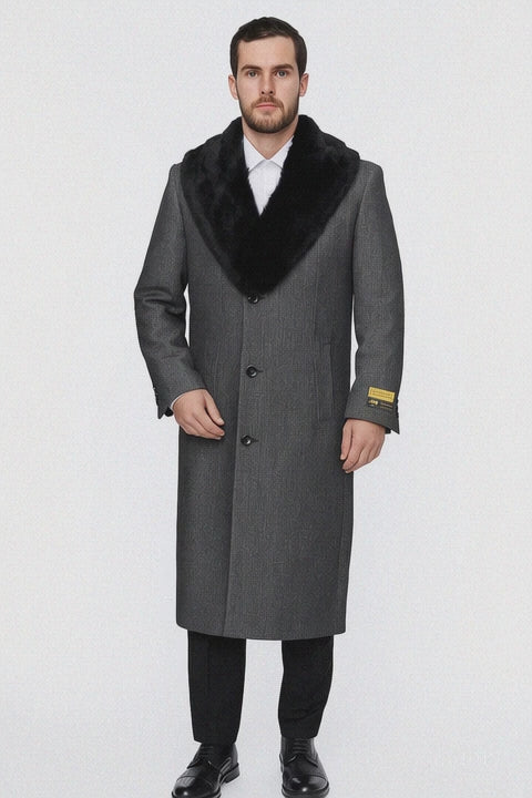 Men's Grey Full Length Wool Dress Top Coat / Overcoat