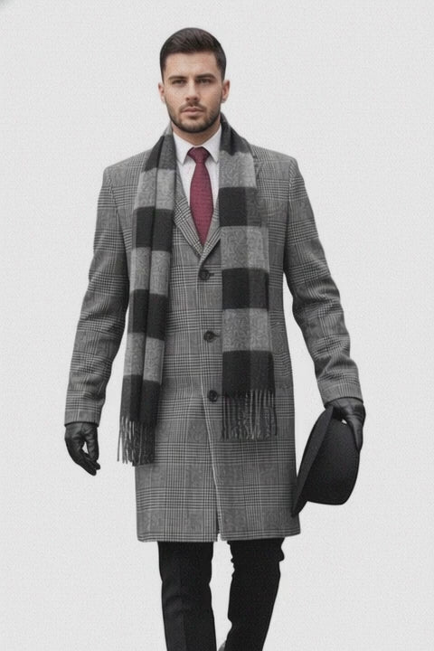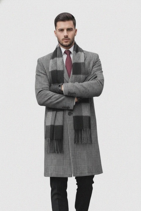 Mens Overcoat - Grey and Black Glen Plaid Carocat