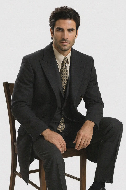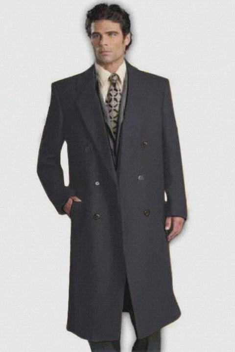 DBCoat Men's Wool Long Designer Men's Wool Men's Peacoat Sale Double Breasted Overcoat Style Full Length Charcoal
